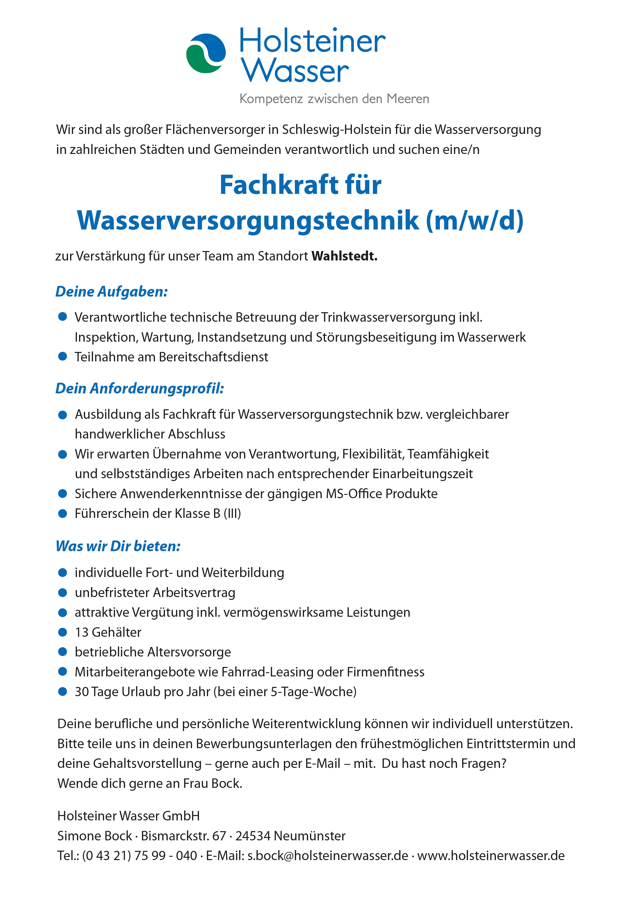 Werden Sie Teil der Holsteiner Wasser GmbH
